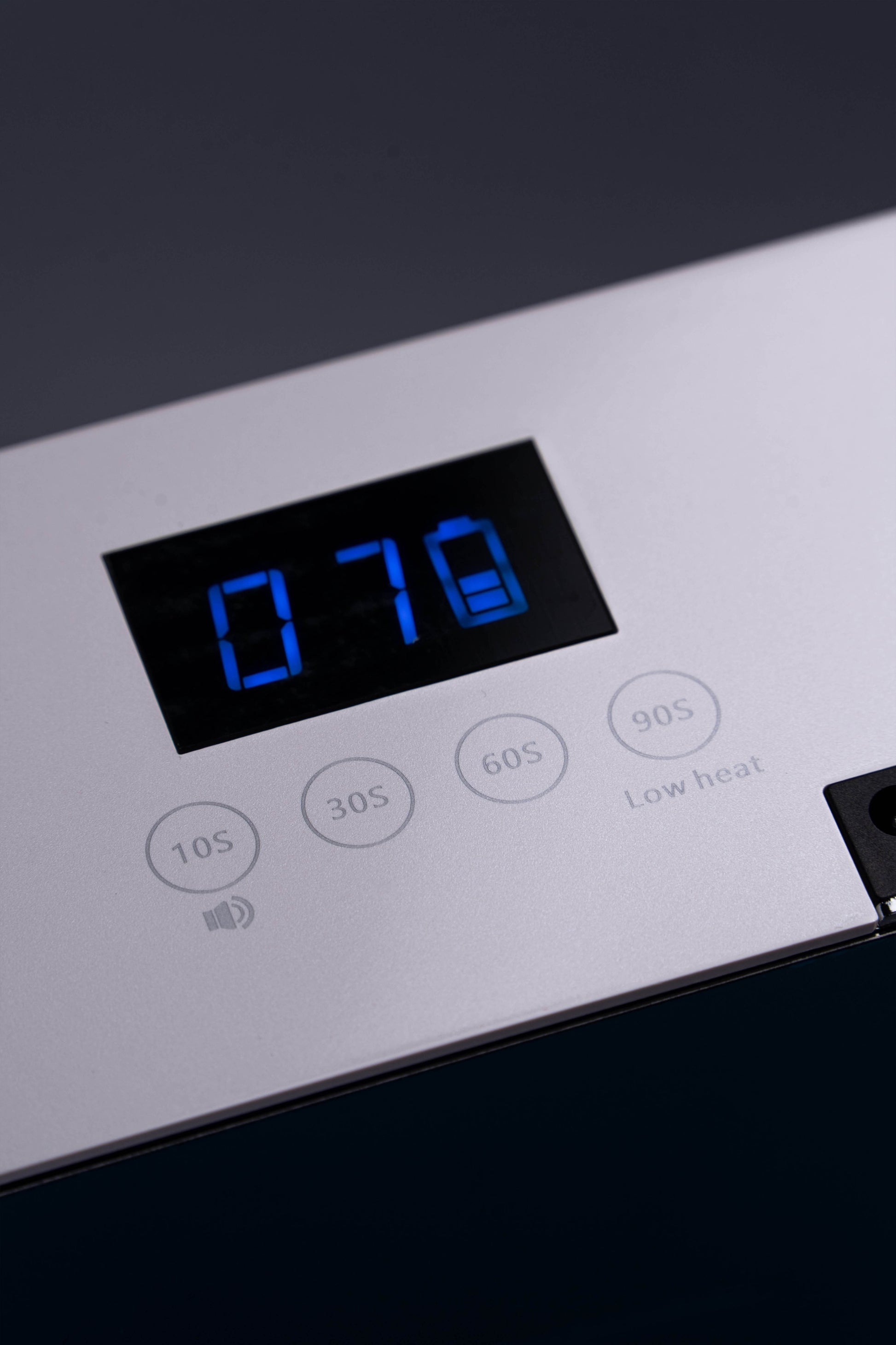The default setting is 30 seconds. Once the machine is in standby mode, the user can select the time using the 10S / 30S / 60S / 90S buttons (low heat mode).